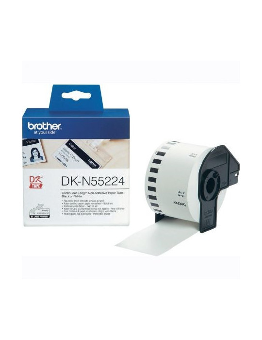 Brother DK-N55224 Roll White Continuous Length Non-Adhesive Paper Tape 54mmx30.48M (Black on White)