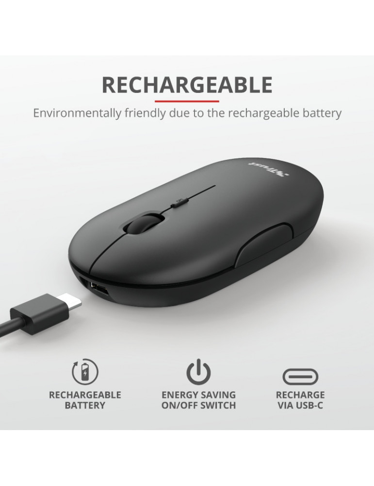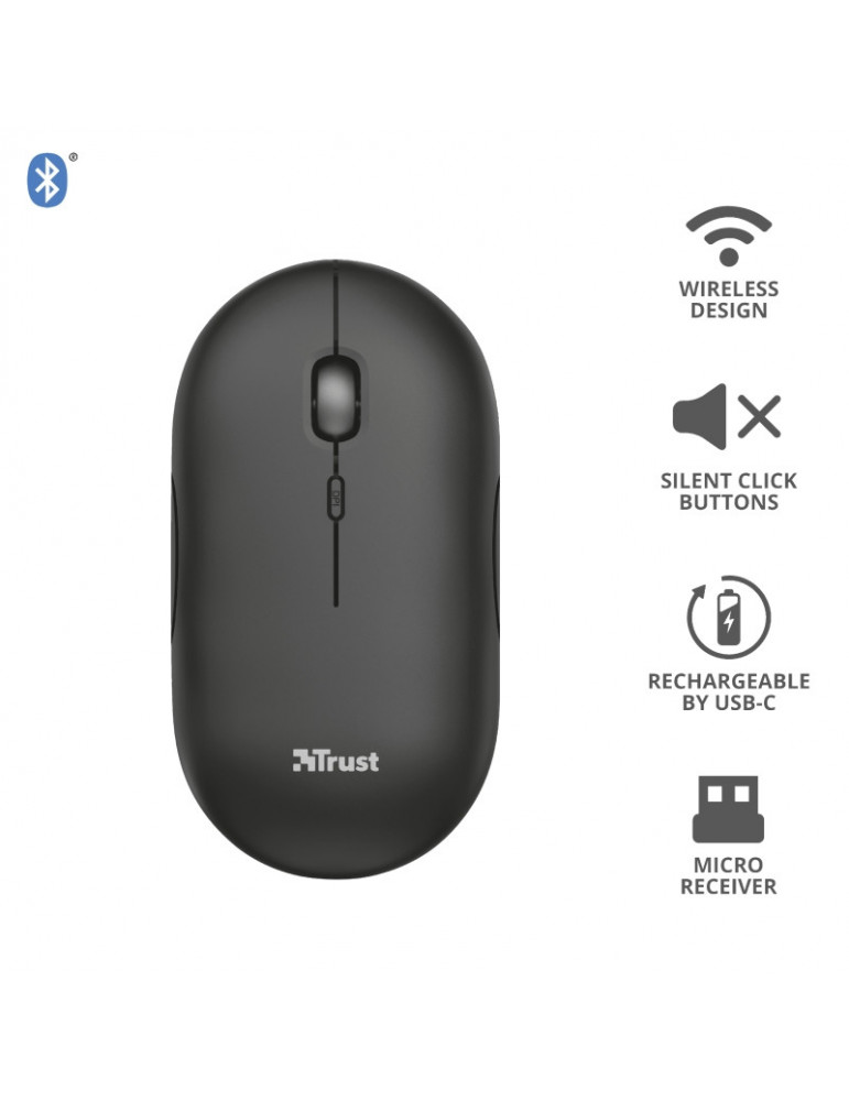 Безжична мишка Trust Puck, презареждаща се, Bluetooth, черен - 24059