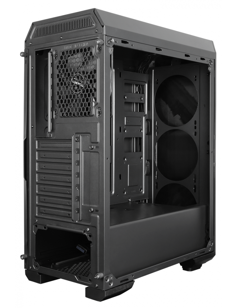 Кутия за компютър Raidmax GHOST T11WB Tower, ATX, 7 slots, 1 X 3.5" H.D., 2X 2.5"H.D / 1 x USB3.0,1 x USB2.0,HD Audio x 2, PSU Optional, 3 X 120mm fan, 1 x120,383x205x464mm, Black