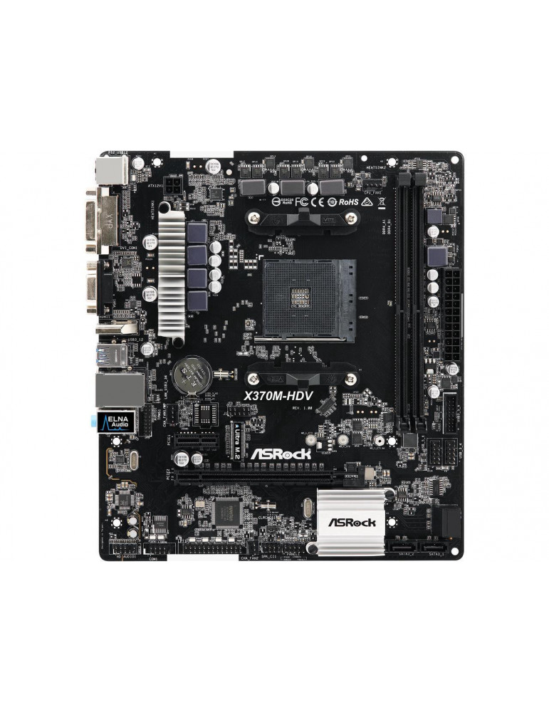 ASROCK X370-HDV AMD AM4 2xDDR4, 1xPCIe x16, 1xPCIe x1, HDMI, DVI-D, D-Sub, 7.1 Audio, 4 SATA3, 1 Ultra M.2 (PCIe Gen3 x4 & SATA3) 6 x USB 3.1 Gen1 (2 Front, 4 Rear), GLAN, 1xLPT (Header), 1xCOM (Header), Micro ATX