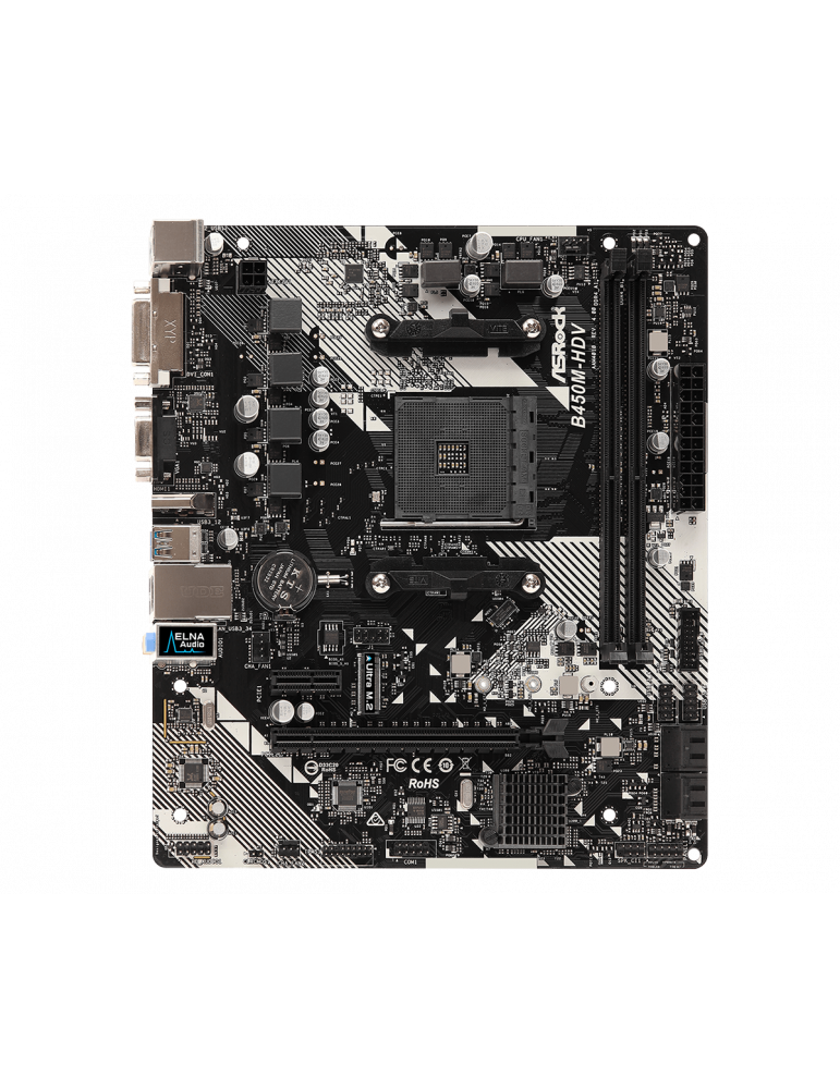 Дънна платка ASROCK AM4 B450 s.AM4, 2xDDR4, 1xPCI 3.0x16, 1xPCI Ex1, SATA III, 1xM.2, 1xUlraM.2, USB3.0, GLAN, VGA, DVI, HDMI, mATX Retail