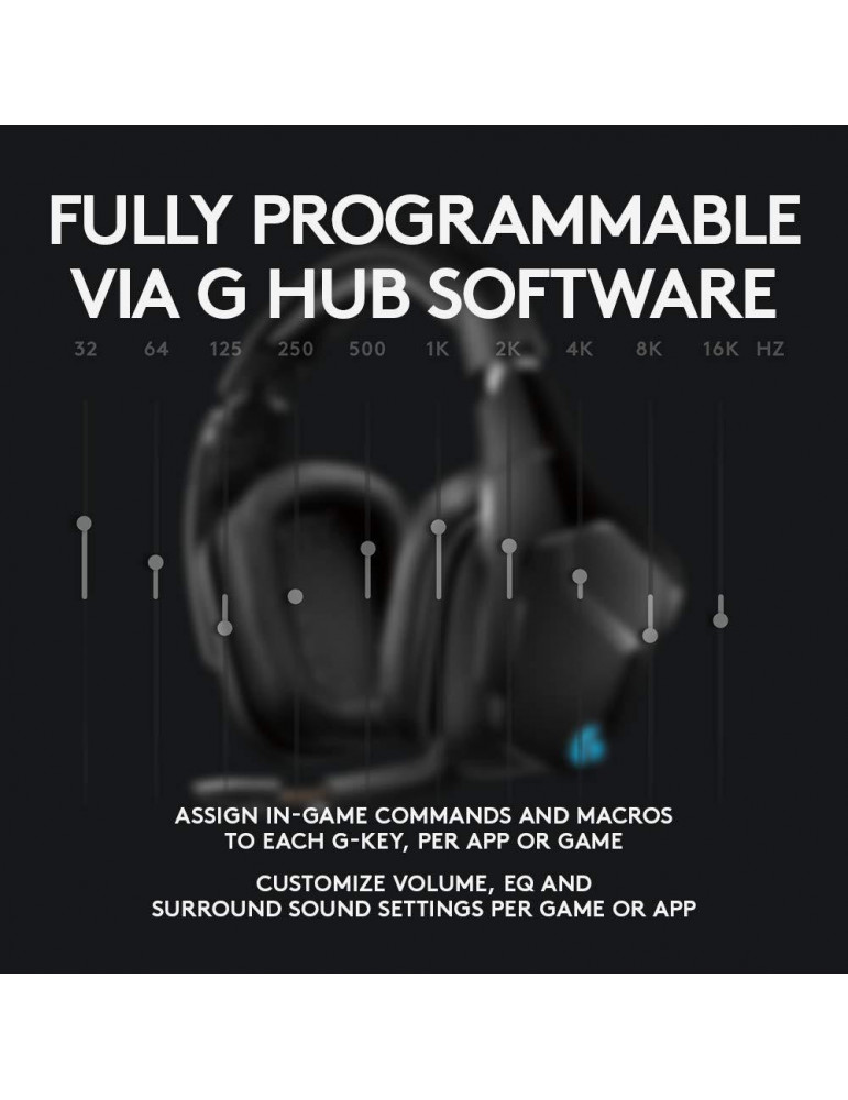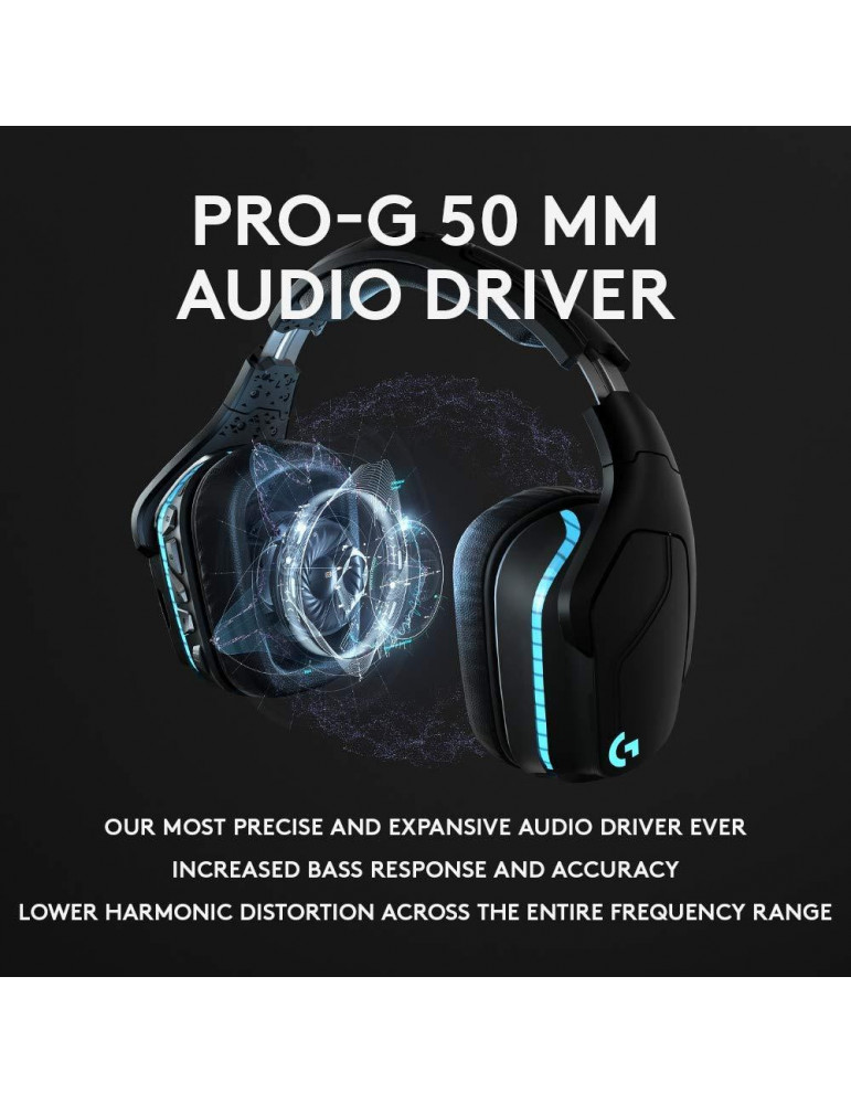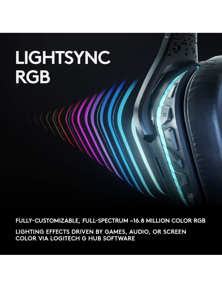 Геймърски слушалки Logitech, G935 7.1 Wireless 7.1 Surround Lightsync, Безжични, Черни