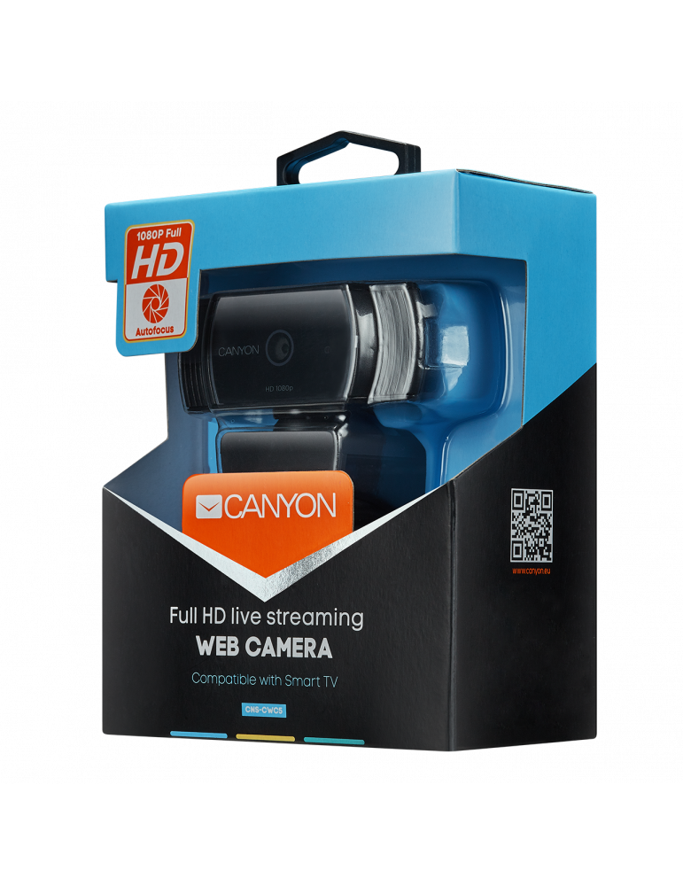 Web камера Canyon CNS-CWC5 1080P full HD 2.0Mega auto focus webcam with USB2.0 connector, 360 degree rotary view scope, built in MIC, IC Sunplus2281, Sensor OV2735