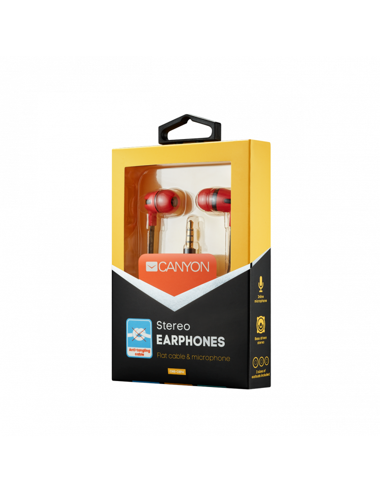 Слушалки Canyon CNS-CEP4R Stereo earphone with microphone, 1.2m flat cable, Red, 22*12*12mm, 0.013kg