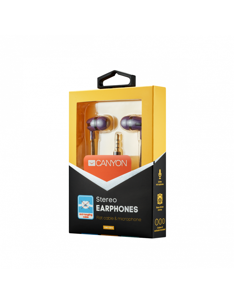 Слушалки Canyon CNS-CEP4P Stereo earphone with microphone, 1.2m flat cable, Purple, 22*12*12mm, 0.013kg