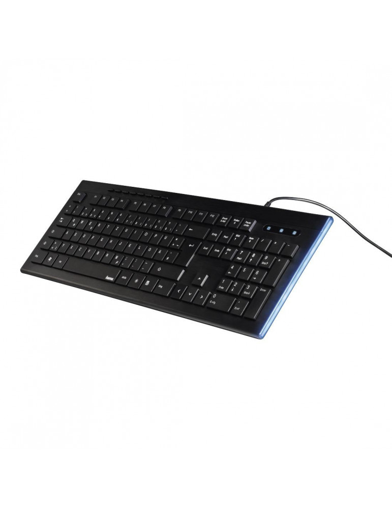Мултимедийна клавиатура HAMA Anzano, светещ страничен ефект в синьо, USB, с кабел, черен