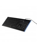 Мултимедийна клавиатура HAMA Anzano, светещ страничен ефект в синьо, USB, с кабел, черенКолички за пазаруване