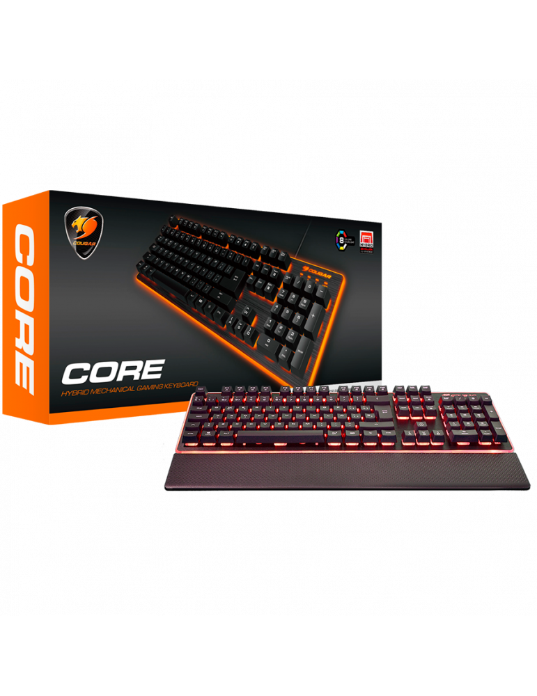 Хибридна механична клавиатура COUGAR Core (20 Million Keystrokes), 8 backlight effects, 19 Anti-ghosting keys, 140(L) X 448(W) X 43(H) mm, 0.8kg, Palmrest