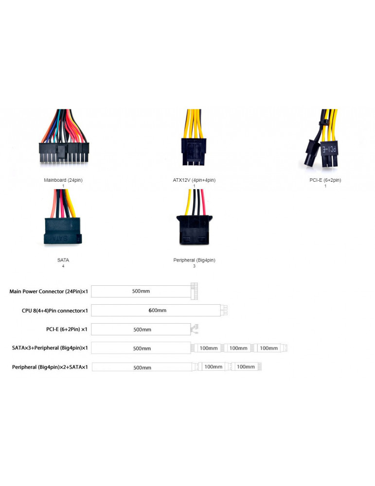 | КОНЕКТОРИ | PCI-Express 6+2pin x 1 SATA x 4 Molex x 3 4+4 Pin ATX/EPS x1 20+4 Pin ATX x1 |