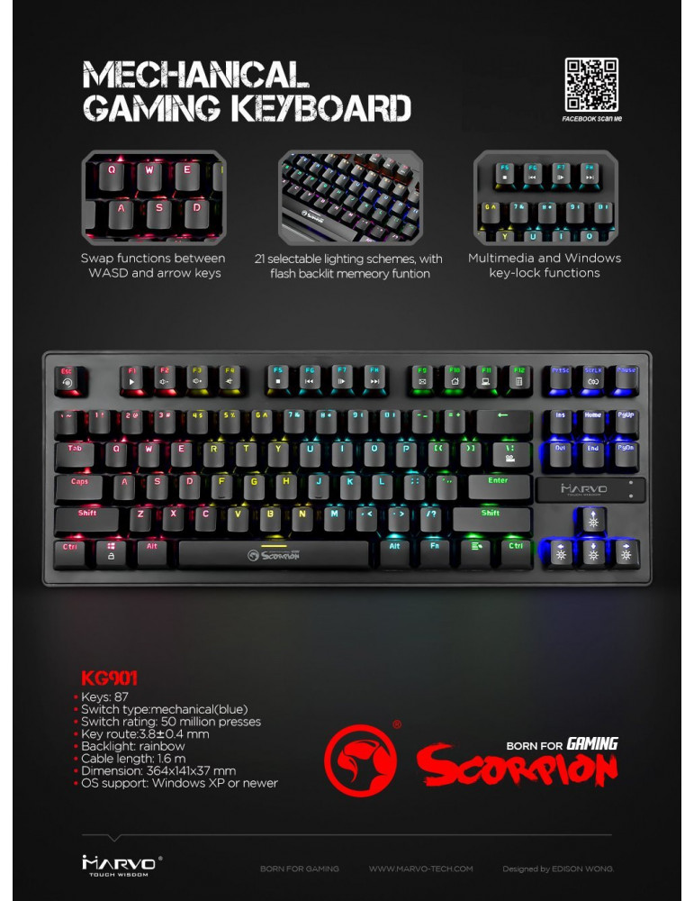 Механична геймърска клавиатура Marvo 87 keys TKL - KG901Колички за пазаруване