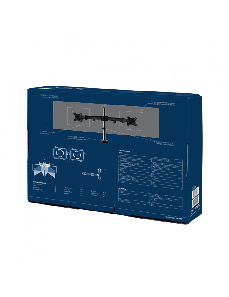 Arctic стойка за два монитора Desk Mount Dual Monitor 4xUSB - Z2 - Gen 3
