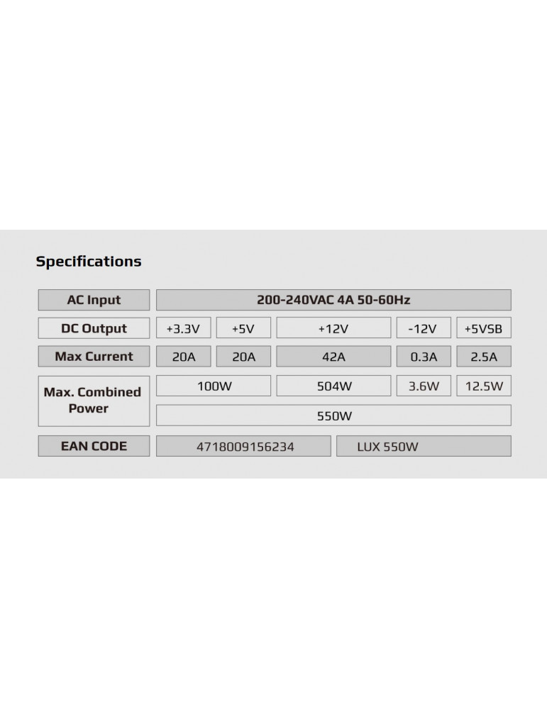 | МОЩНОСТ НА ЗАХРАНВАЩ БЛОК | 550W |