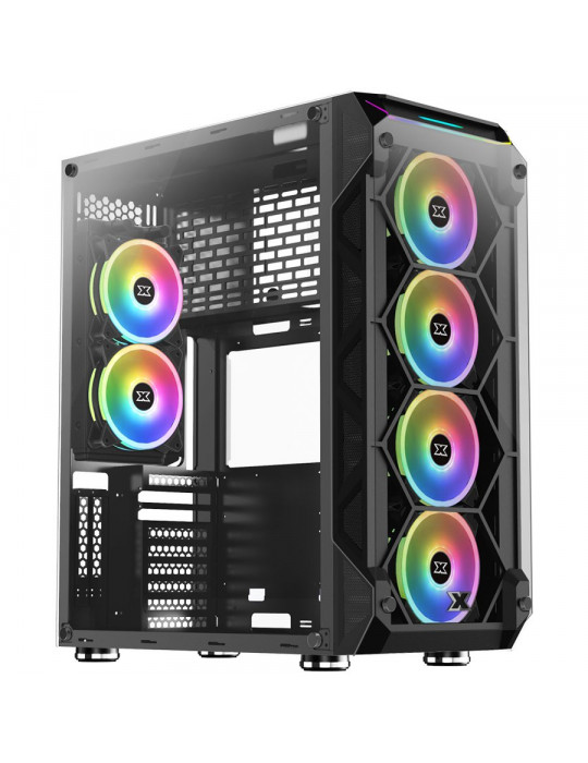 Кутия за компютър Xigmatek Overtake EN43477, E-ATX, ATX, M-ATX, USB3.0x2, USB2.0x2, Front & Left & Right Tempered Glass, Rainbow LED Bar, 6PCS CY120 Fans (Frontx4 & Rearx2)