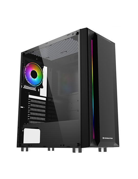 Кутия за компютър Xigmatek Helios EN43224, ATX, M-ATX, Mini ITX USB3.0x1 + USB2.0x2, Rainbow LED Stripe Frontpanel, Left Tempered Glass, 1xCR120