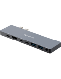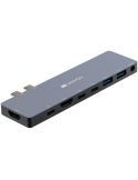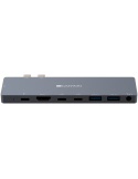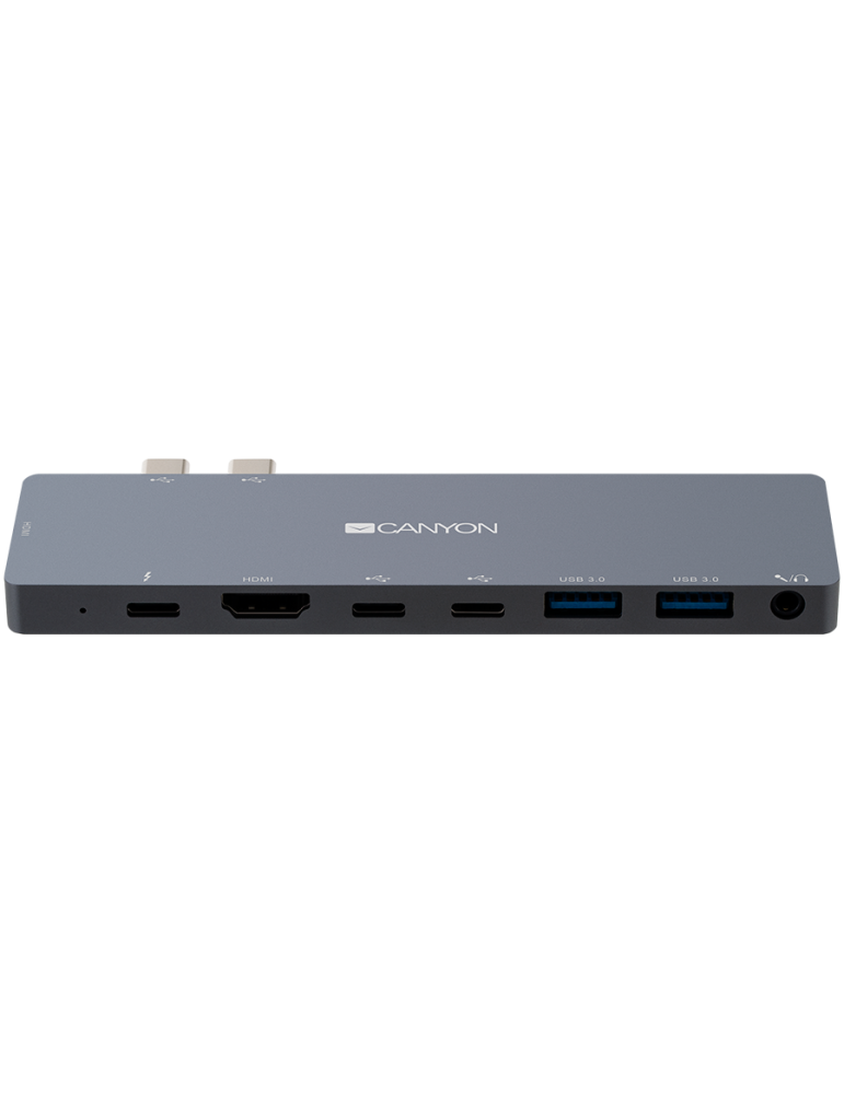 Докинг станция Canyon с 8 порта, 1*Type C PD100W+2*Type C data+2*HDMI+2*USB3.0+1*Audio. Input 100-240V, Output USB-C PD100W&USB-A 5V/1A, Aluminium alloy, Space gray, 135*48*10mm, 0.056kg
