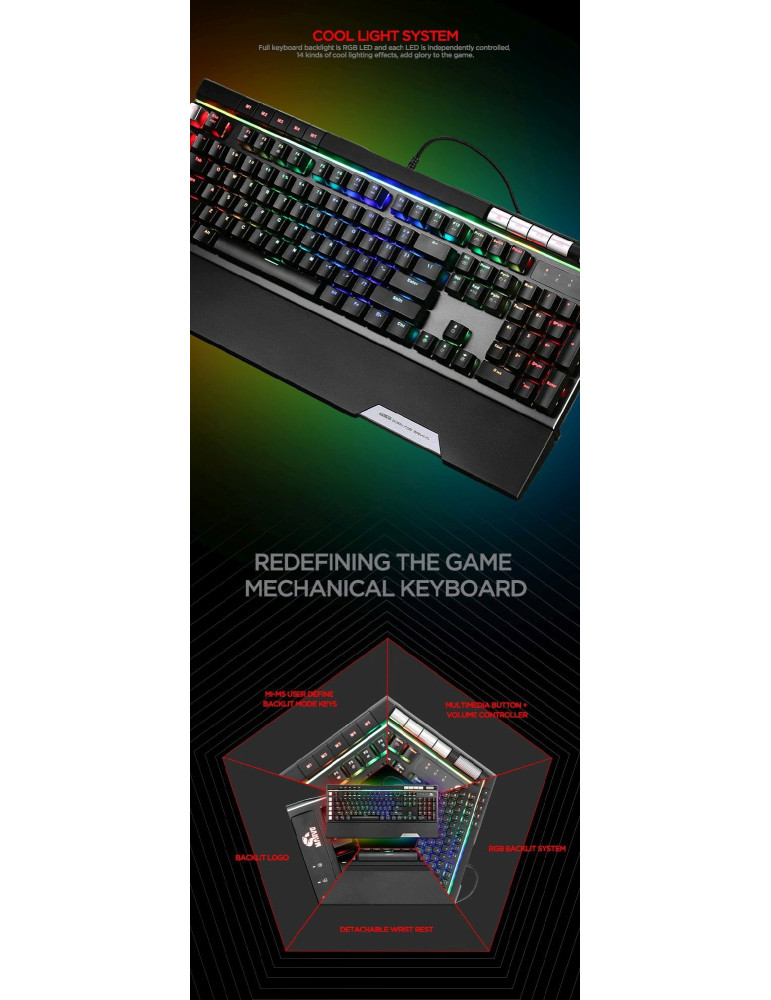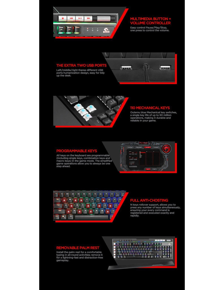 | ДОПЪЛНИТЕЛНИ | 2 port USB Hub Heavy Duty Design: Metal made front plate and high quality ABS Full anti-ghosting support RGB backlight for each key Special Macro and Backlight keys Dedicated multimedia controls Advanced customization 8 multimedia keys, wide edge palm rest |