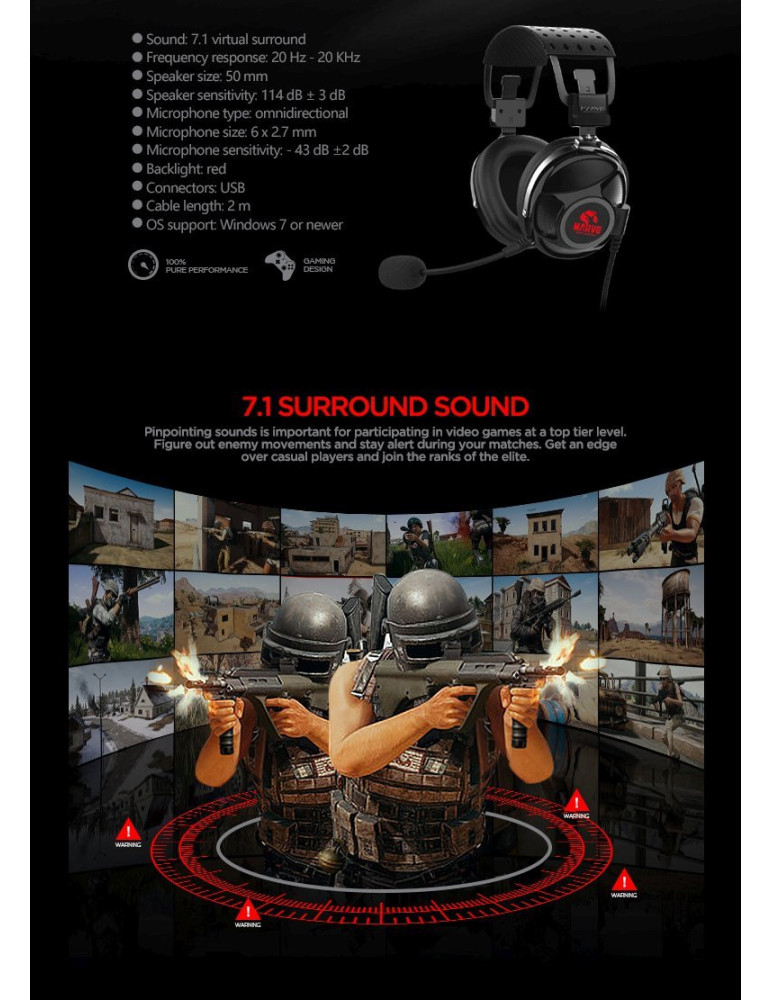 Геймърски слушалки Marvo PRO HG9053 7.1 USB - MARVO-PRO-HG9053