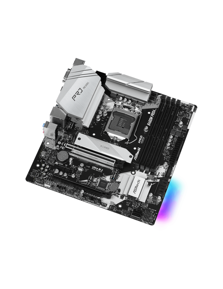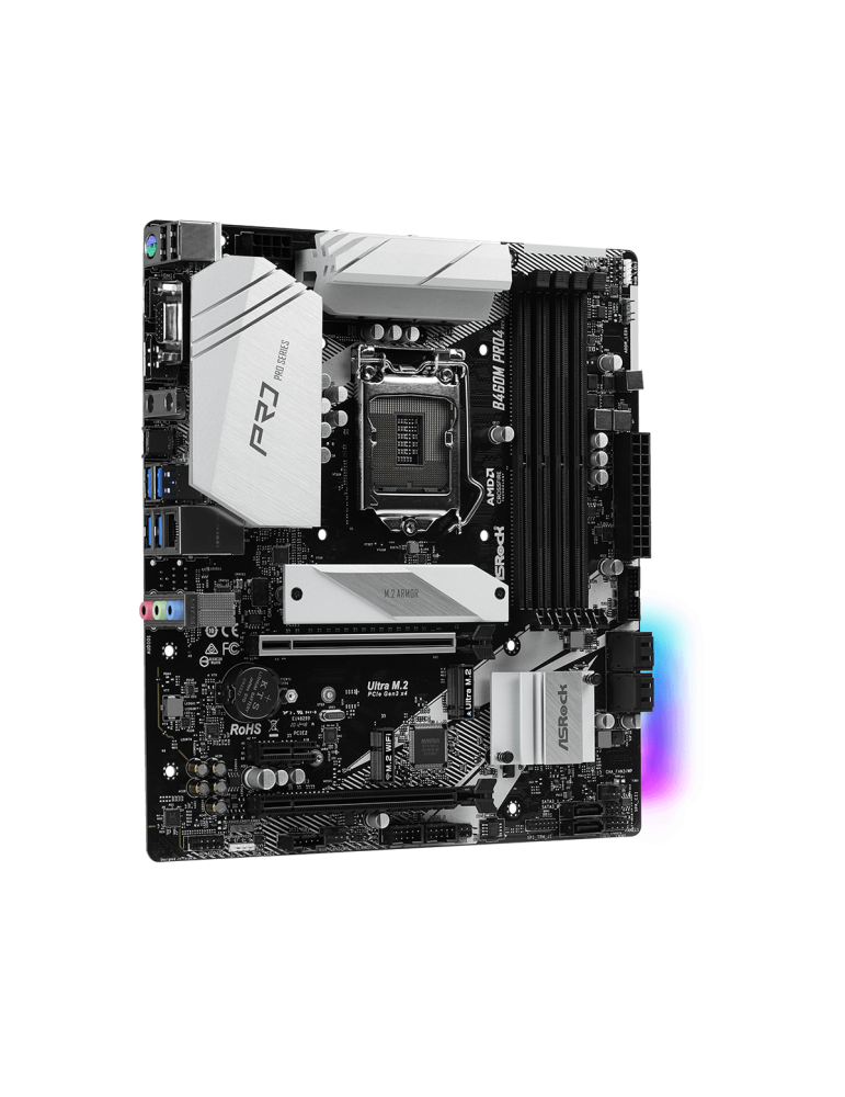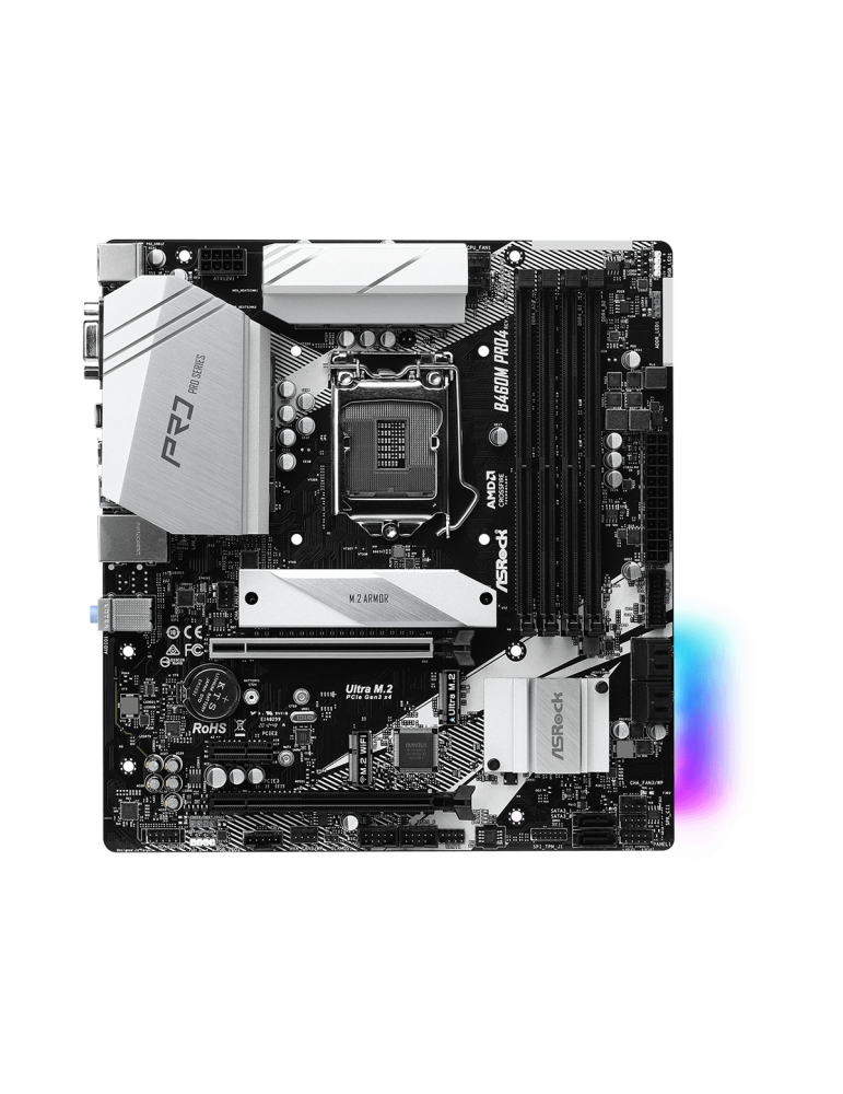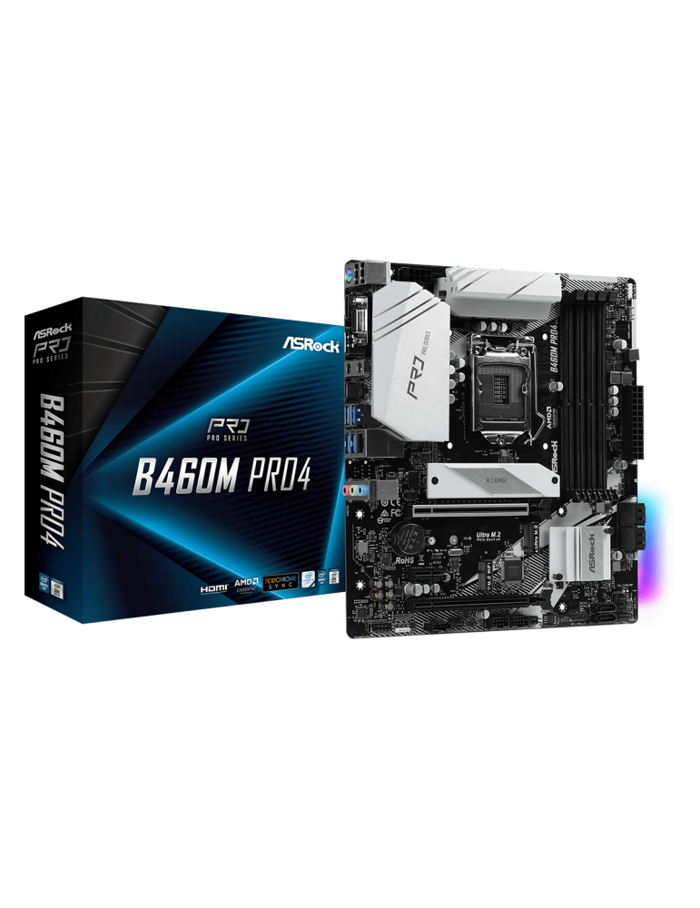 Дънна платка AsRock B460M PRO4 (LGA1200, 4xDDR4,2xPCIe x16,2xPCI Ex1, 6 SATA3 ,2x Ultra M.2, GLAN,VGA,DP,HDMI,USB 3.1 ) ATX retail