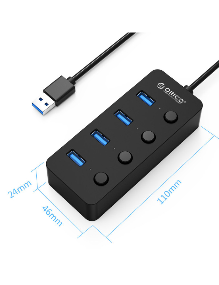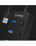 Orico хъб USB3.0 HUB 4 port black, 4 On/Off buttons - W9PH4-U3-BK