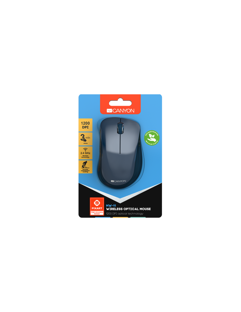 Безжична мишка Canyon CNE-CMSW11BL 2.4 GHz Wireless mouse ,with 3 buttons, DPI 1200, Battery:AAA*2pcs ,Blue67*109*38mm 0.063kg