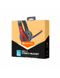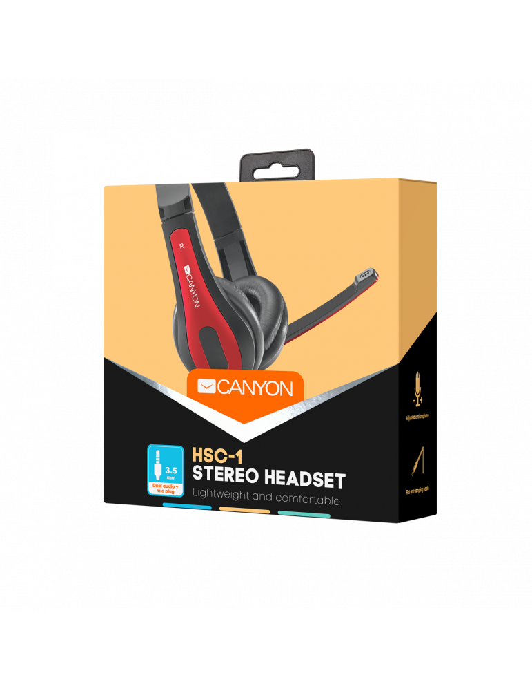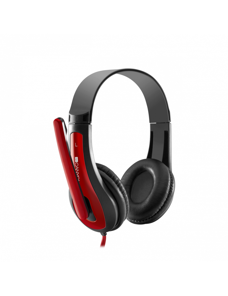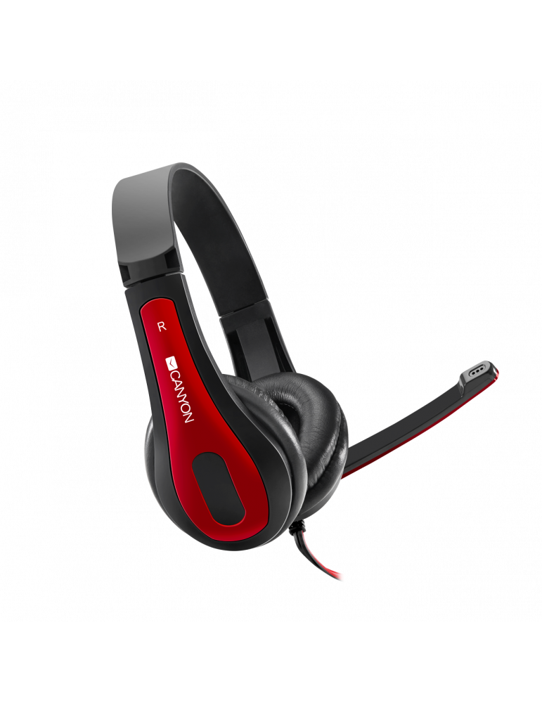 Слушалки Canyon HSC-1 basic PC headset with microphone, combined 3.5mm plug, leather pads, Flat cable length 2.0m, 160*60*160mm, 0.13kg, Black-red