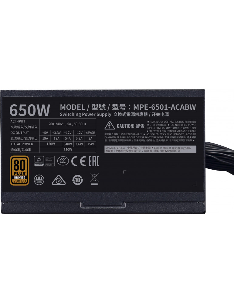 Захранващ блок Cooler Master MWE 650 Bronze V2 230V - MPE-6501-ACABW-BEU