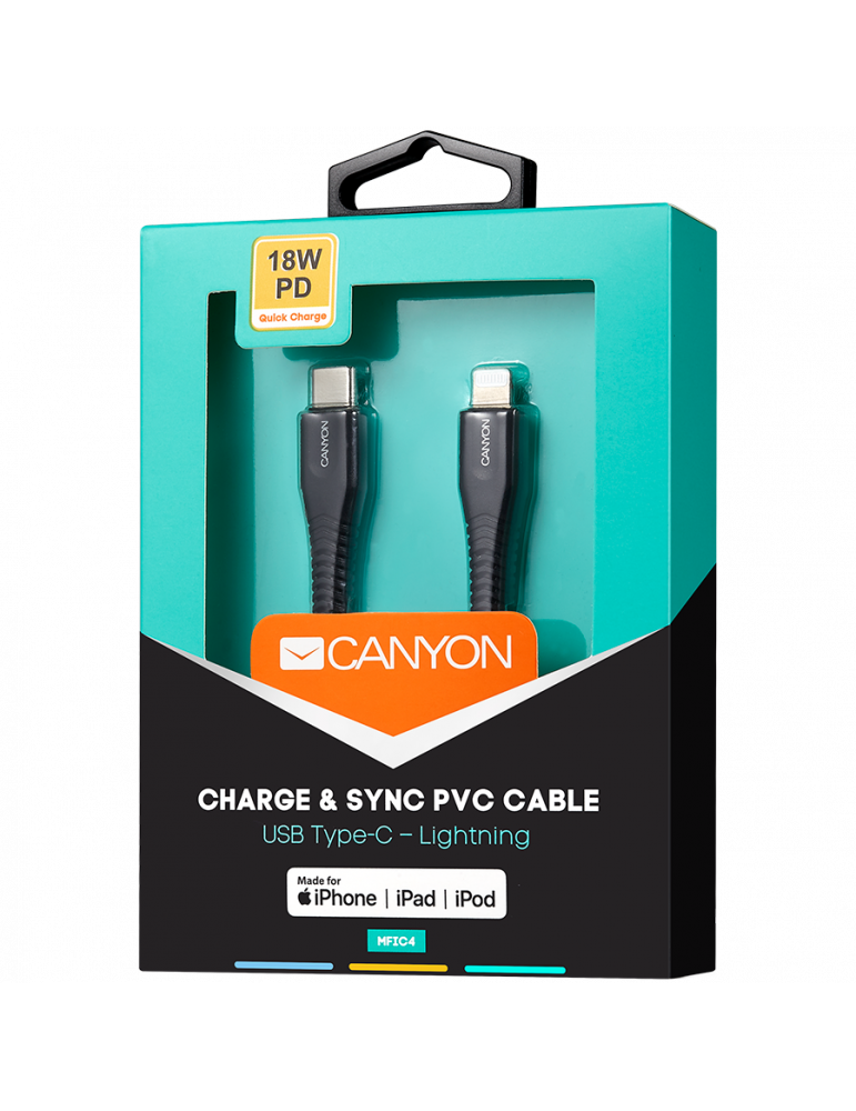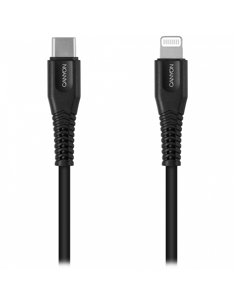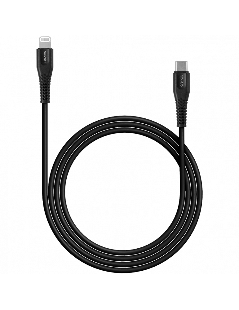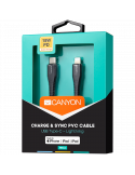 Кабел Canyon CNS-MFIC4B Type C Cable към MFI Lightning for Apple, PVC Mouling,Function?with full feature( data transmission and PD charging) Output:5V/2.4A , OD:3.5mm, cable length 1.2m, 0.026kg,Color:Black