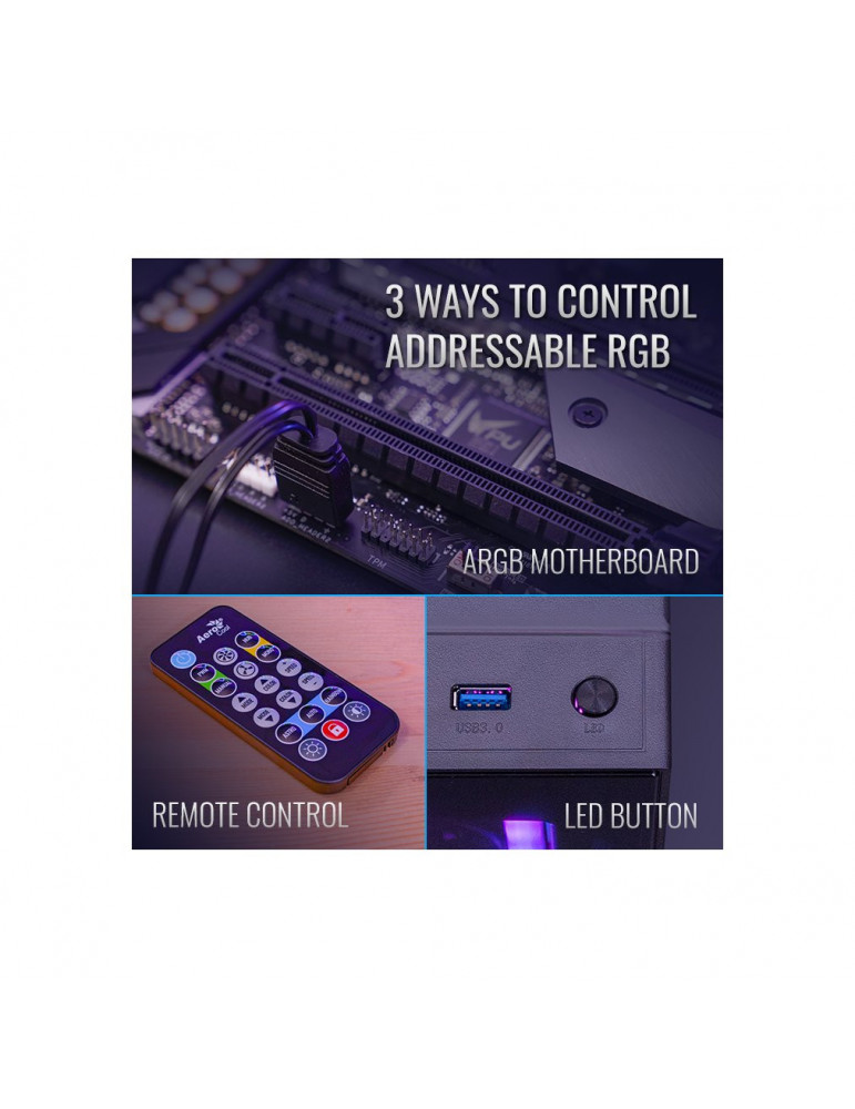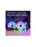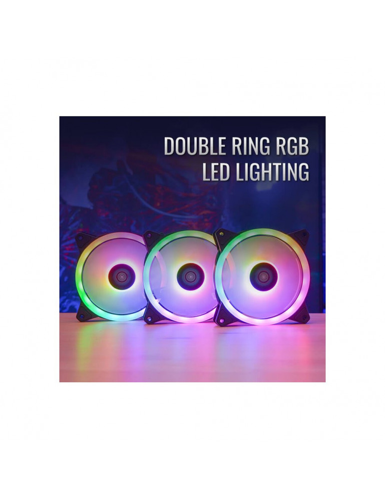 | ДРУГИ | 28 LEDs ensure complete evenness and uniformity in color and brightness Access 16.8 million colors using compatible Addressable RGB motherboards Comes with 3 x Duo 12 fans, 1 x H66F RGB 6-port Control Hub, and 1 x Remote Control Double Ring RGB LED Lighting design adds extra flair to your rig H66F hub allows you to connect up to six 6-Pin ARGB fans and up to two ARGB accessories with 5V ARGB connector H66F hub comes with PWM control functions for optimized fan RPM |