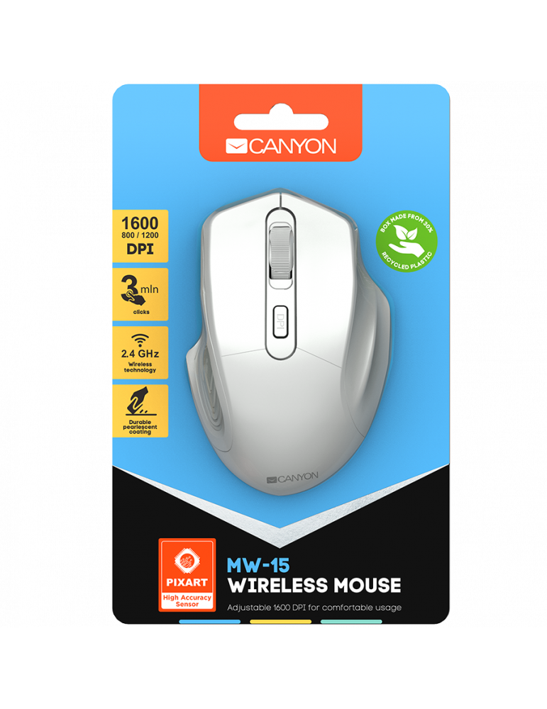 Безжична мишка Canyon CNE-CMSW15PW, перлено бял
