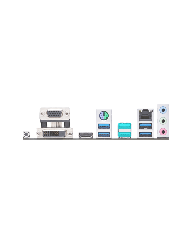 | I/O | 1 x PS/2 keyboard/mouse combo port(s); 1 x DVI-D; 1 x D-Sub; 1 x HDMI; 1 x LAN (RJ45) port(s); 2 x USB 3.2 Gen 2 (teal blue) (2 x Type-A); 4 x USB 3.2 Gen 1 (blue) Type-A; 3 x Audio jack(s); 1 x BIOS FlashBack™ Button(s) |