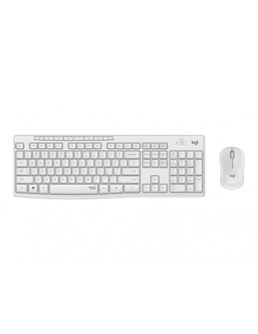 Комплект клавиатура и мишка Logitech MK295 Silent Wireless Combo (920-009824), безжични, мултимедийни клавиши, технология SilentTouch, регулируема височина на клавиатурата, бели