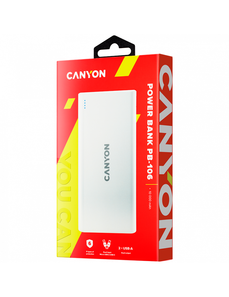 Външна батерия Canyon PB-106 10000mAh, бял - CNE-CPB1006W