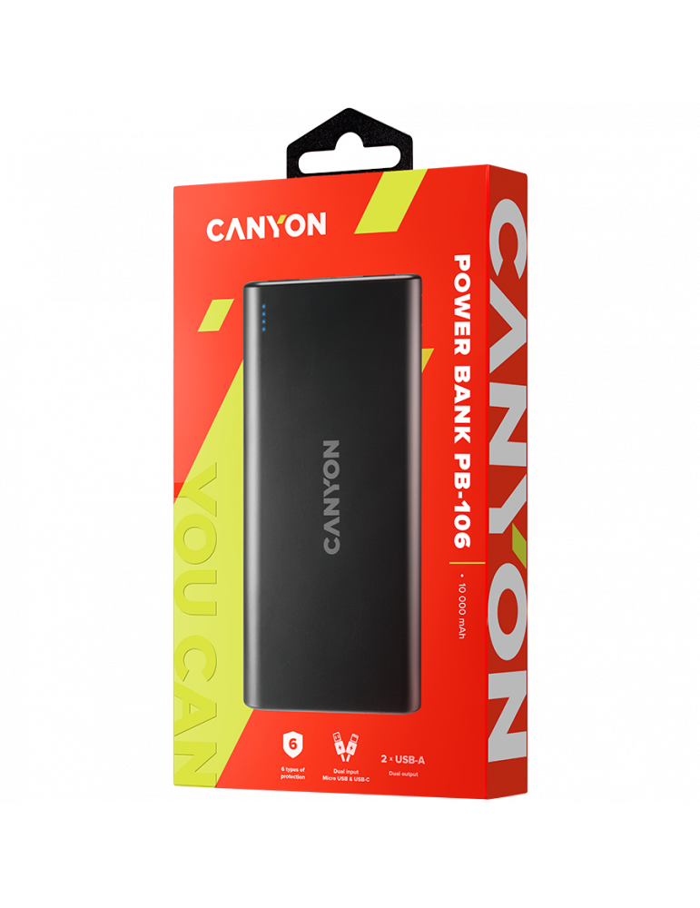 Външна батерия Canyon PB-106 10000mAh, черен - CNE-CPB1006B