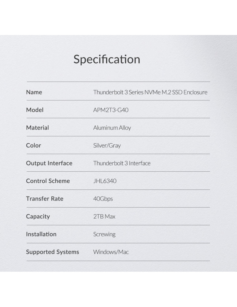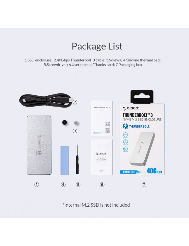 Orico външна кутия за диск Storage - Case - M.2 NVMe M key - THUNDERBOLT 3 40Gbps - APM2T3-G40