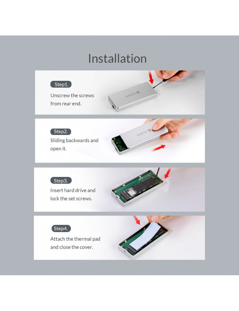 Orico външна кутия за диск Storage - Case - M.2 NVMe M key - THUNDERBOLT 3 40Gbps - APM2T3-G40Колички за пазаруване