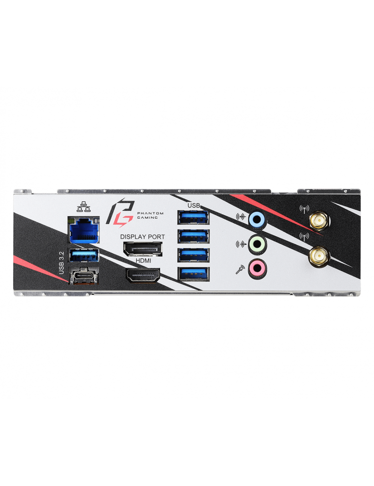 | Свързаност | 2 x Antenna Ports, 1 x HDMI Port, 1 x DisplayPort 1.4, 1 x USB 3.2 Gen2 Type-A Port (10 Gb/s) (Supports ESD Protection), 1 x USB 3.2 Gen2 Type-C Port (10 Gb/s) (Supports ESD Protection), 4 x USB 3.2 Gen1 Ports (Supports ESD Protection), 1 x RJ-45 LAN Port with LED (ACT/LINK LED and SPEED LED), HD Audio Jacks: Line in / Front Speaker / Microphone |