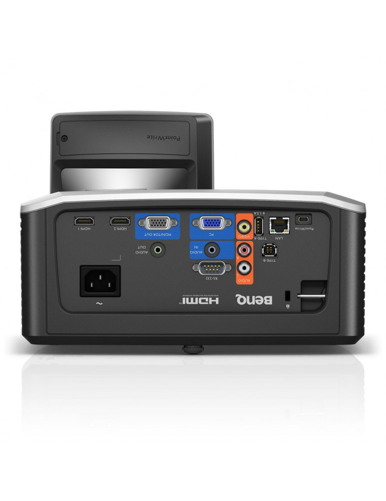 BenQ MW855UST+, DLP, WXGA (1280x800), Ultra Short-throw, 3500 ANSI Lumens, Contrast 10000:1, Vertical lens shift, HDMI 2.0 x2, RJ45, VGA in x1, VGA out, Audio In/Out, RCA, 10W Speaker x2, Wall mount included, Optional Qcast and Interactive module, 5 kg