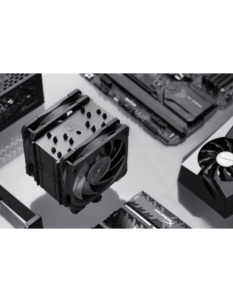 | ДОПЪЛНИТЕЛНИ | Copper (base and heat-pipes), aluminium (cooling fins), soldered joints & nickel plating Scope of delivery 2x NF-A12x25 PWM chromax.black premium 120mm fans 2x NA-RC14 Low-Noise Adaptor (L.N.A) NA-YC1 4-pin PWM y-cable SecuFirm2? mounting system for Intel and AMD NT-H1 thermal compound Noctua Metal Case-Badge |