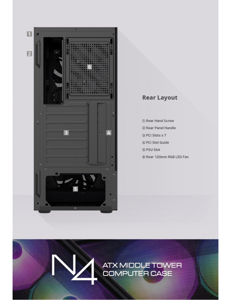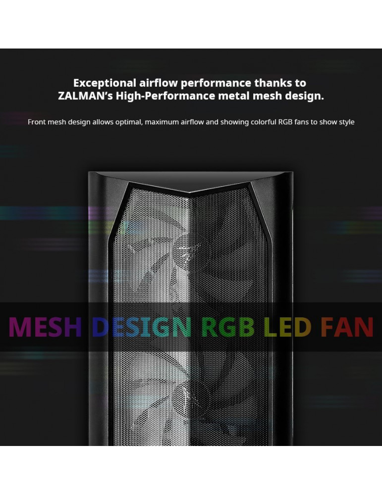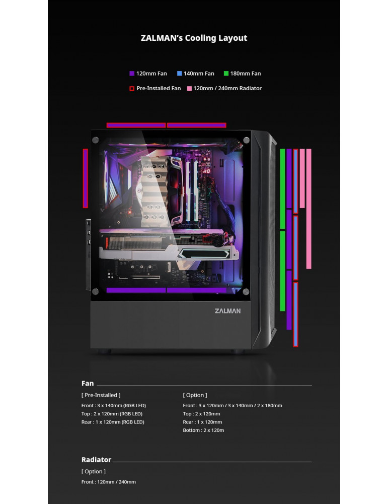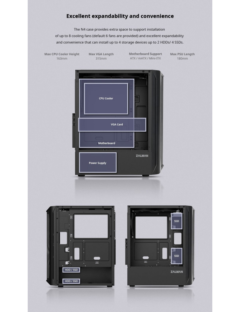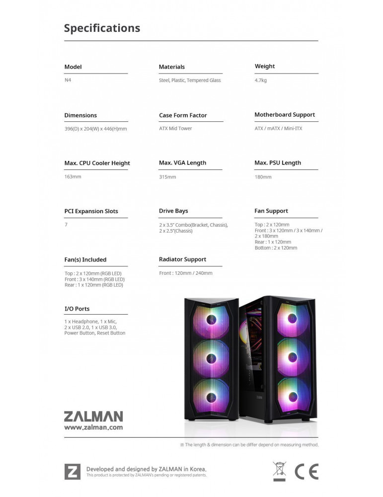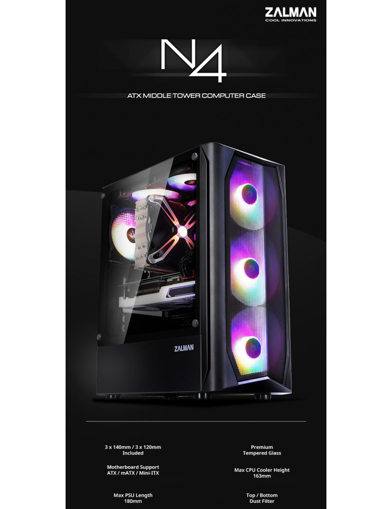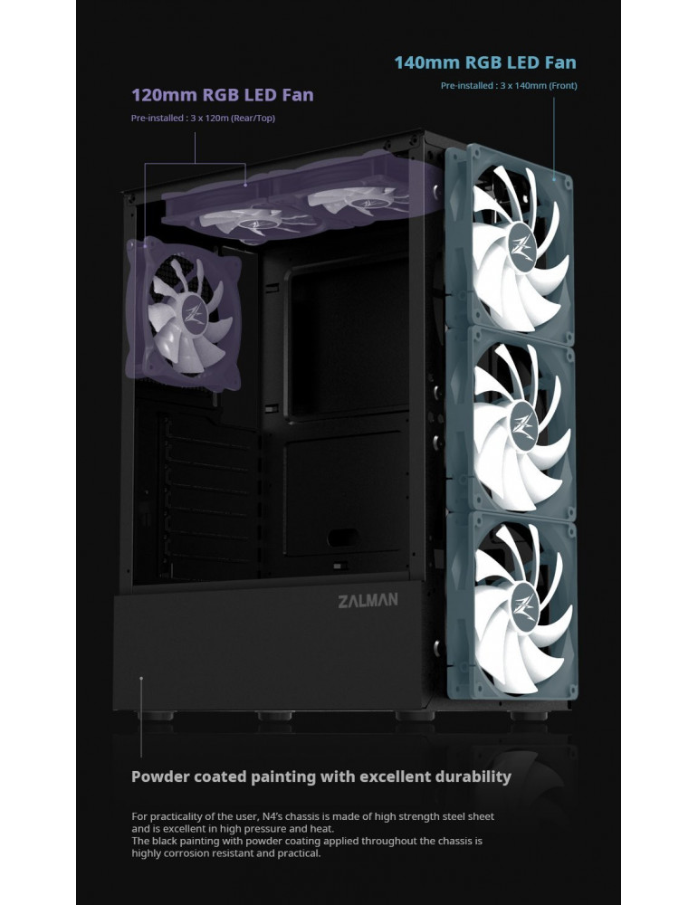Кутия за компютър Zalman N4, с включени 6бр RGB вентилатори, Tempered Glass