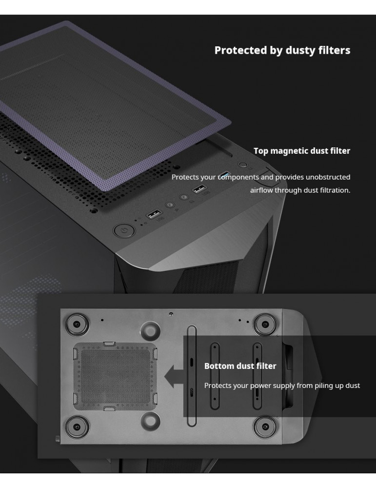 | ДОПЪЛНИТЕЛНИ | Cable-management-friendly chassis Front Panel Mesh Design Magnetic Dust Filter Premium Edgeless Tempered Glass |