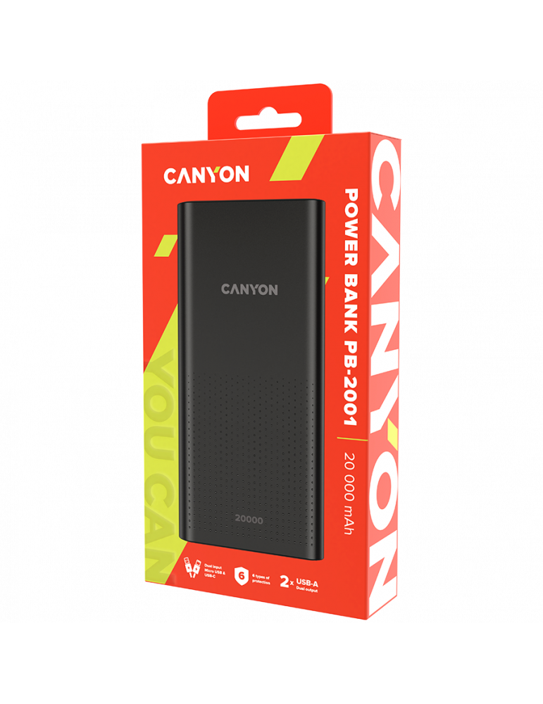 Външна батерия Canyon PB-2001 20000mAh, черен - CNE-CPB2001B