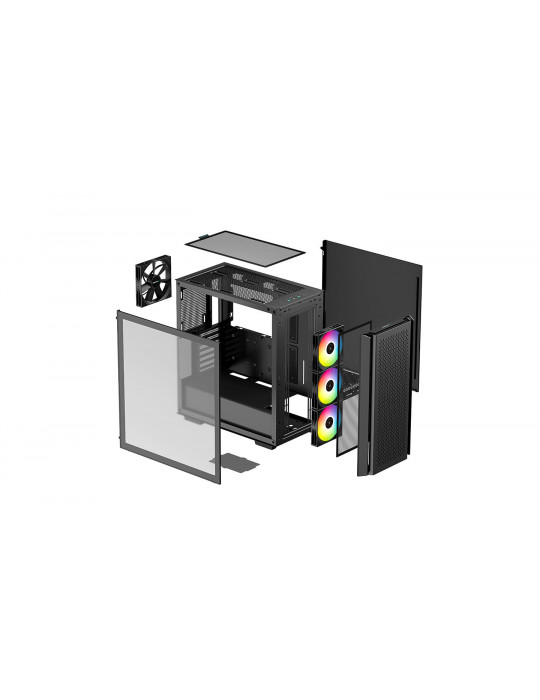 | ДОПЪЛНИТЕЛНИ | ATX PS2 (maximum length: 160 mm) Along with two USB 3.0 ports and a combination audio/mic jack, the reset button is custom configured to control preset lighting effects on the three pre-installed ARGB fans Easy-to-clean magnetic dust filters. Easy access side panels |