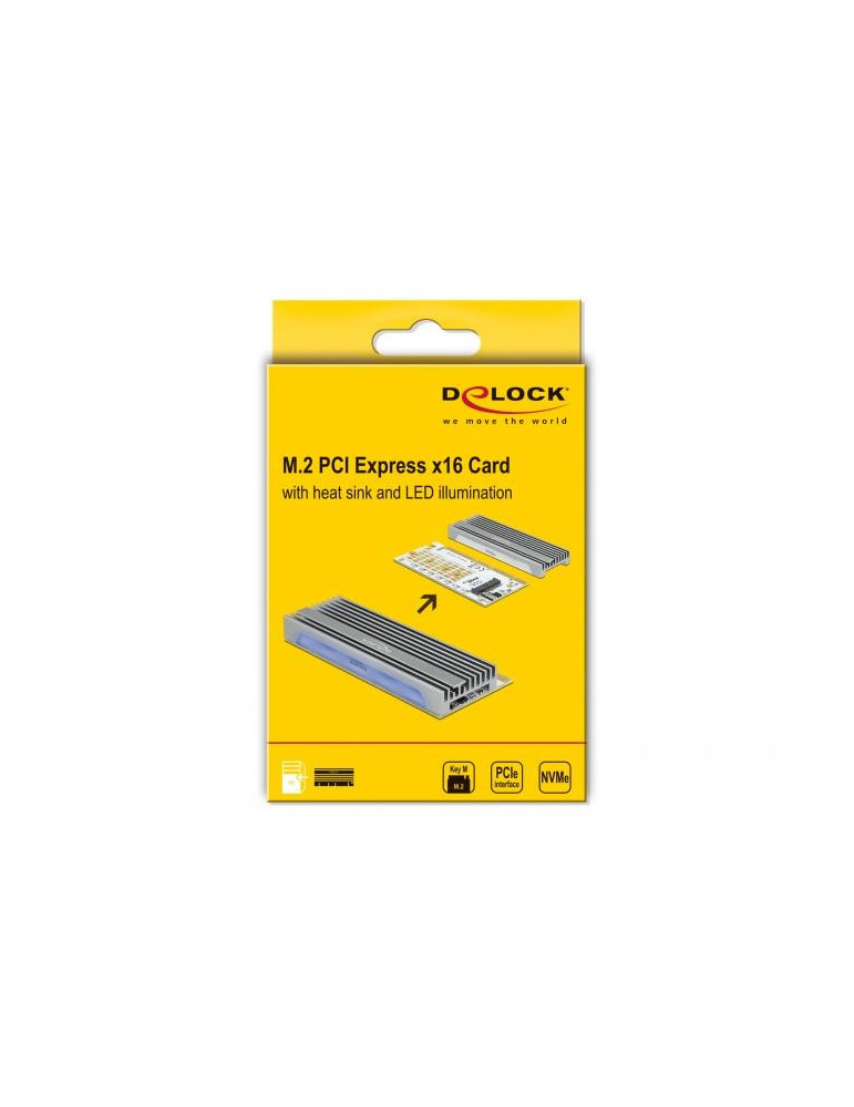 PCI Express x16 (x1 / x4 / x8) карта Delock 90566, за M.2 NVMe M.2 Key M, RGB LED