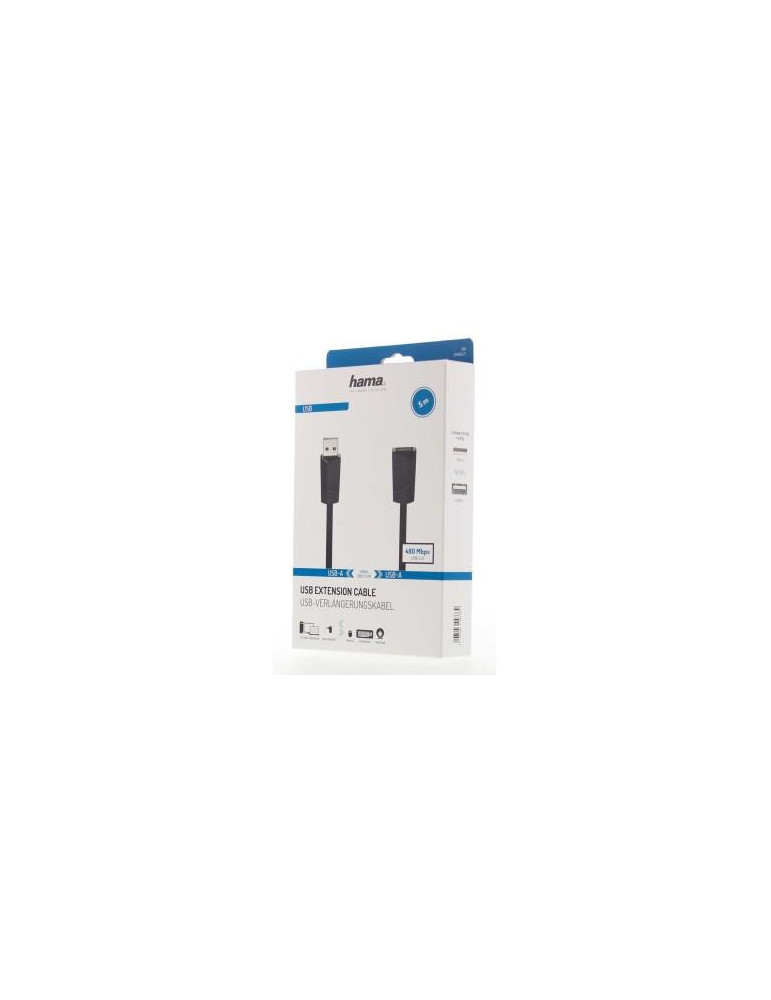 Удължителен кабел HAMA 200621 USB-A женско - USB-A мъжко, 5 м, екраниран, черен