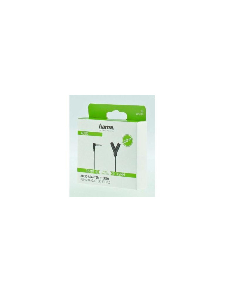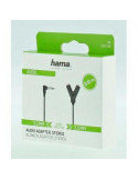 Аудио адаптер HAMA 205190, 3.5 мм жак мъжко - 2 3.5 мм жак женско, 0.2м, Черен