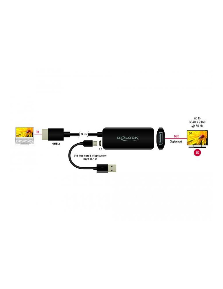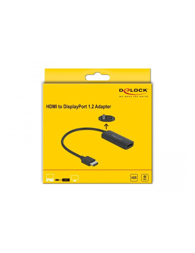 Адаптер Delock 63206, HDMI-A мъжко - DisplayPort женско, 4K 60 Hz, Черен
