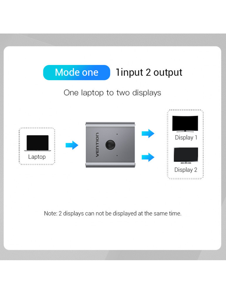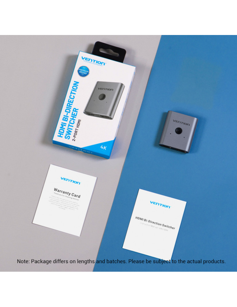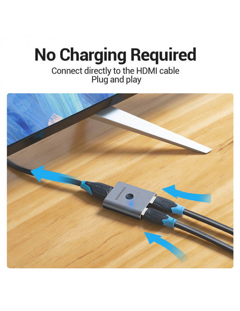 Разклонител превключвател Vention HDMI 2.0 Switcher/Splitter 2-Port Bi-Direction - Silver Aluminium - AFUH0