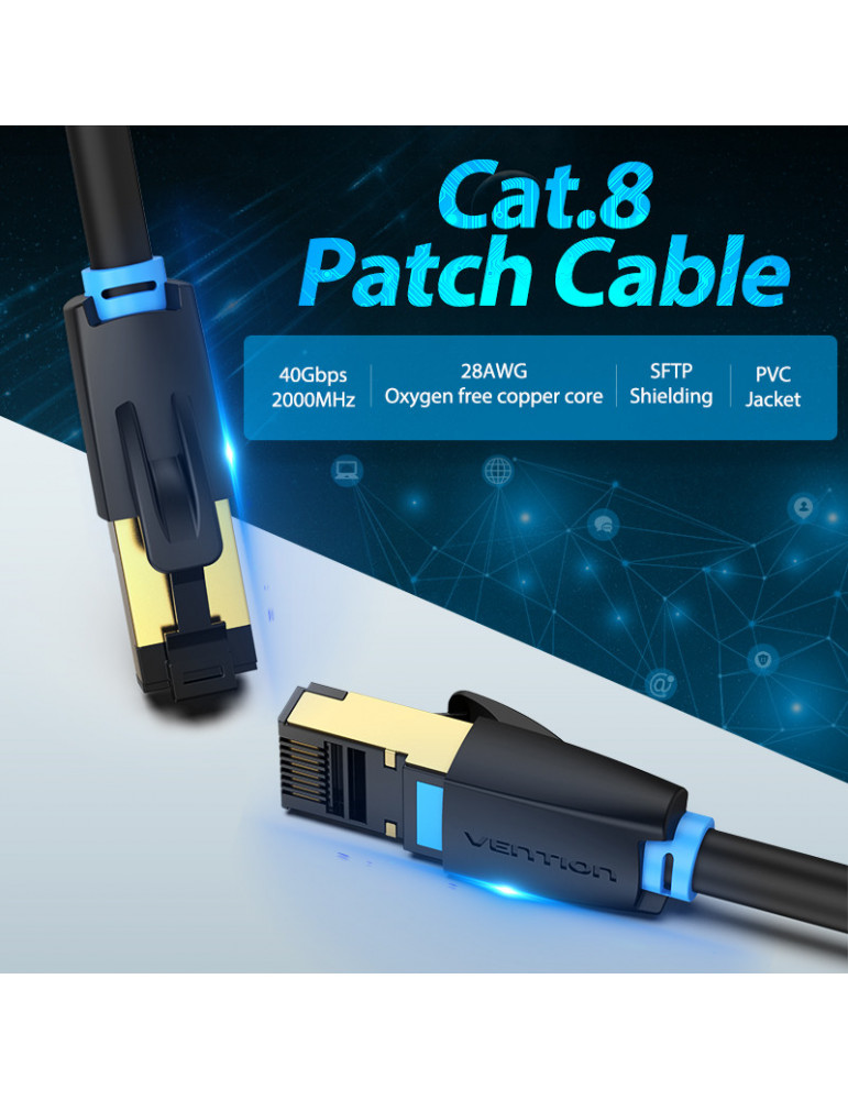 Кабел Vention LAN SFTP Cat.8 Patch Cable - 1.5M Black 40Gbps - IKABG