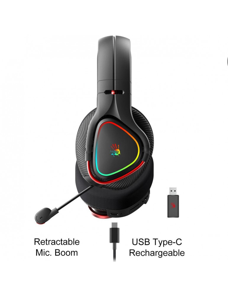 Безжични геймърски слушалки A4Tech Bloody MR710, Bluetooth v5.0, 2.4Ghz Wireless, Кабел 3.5мм, RGB, Микрофон, Черен