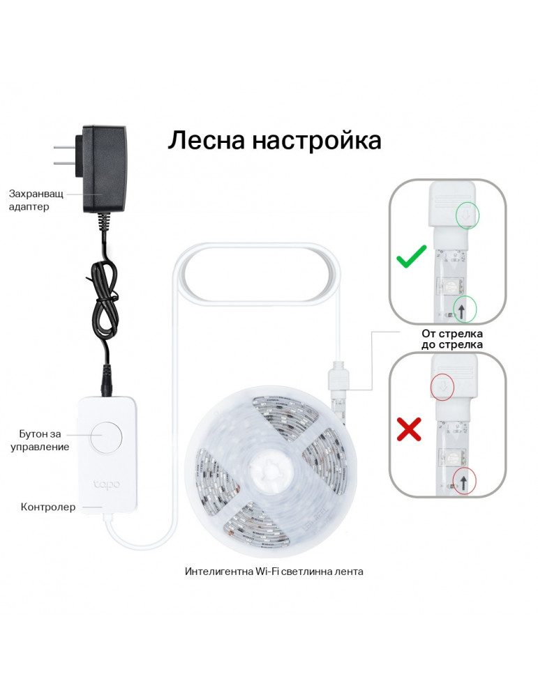 Многоцветна безжична LED Smart лента TP-Link Tapo L920 5 метра - Tapo L920-5